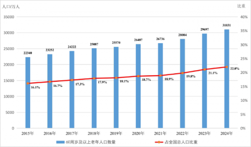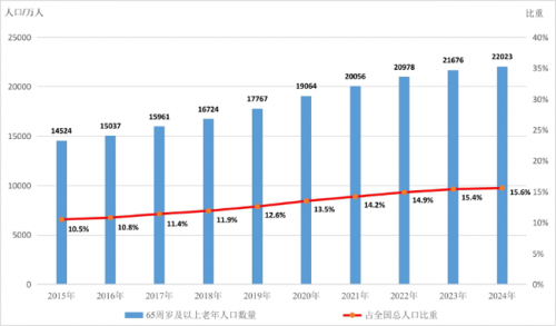 据第七次全国人口普查显示,中国目前60岁以上人口已达2.64亿,占总人口比重的18.7%。根据联合国的划分标准,当一国60岁及以上人口比例超过10%或者65岁及以上人口比例超过7%,则认为该国进入“老龄化”社会;当这两个指标翻番的时候,则认为该国进入“中度老龄”社会。按照这一标准及人口预测,十四五期间,我国将进入“中度老龄化”阶段;到2035年,我国将步入“重度老龄化”社会。