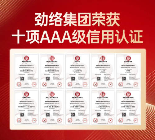 佳绩频传,喜讯再至!近日,我们的重要合作伙伴——劲络集团,荣誉版图再添重磅一笔,成功拿下国内企业信用评价体系最高等级的AAA 级信用企业认证,同步包揽 “AAA 级诚信经营示范单位”“AAA 级重质量守信用单位” 等 “1 牌 10 证” 全领域权威资质。作为劲络品牌湖南总经销商,湖南弘百祥商贸有限公司深感自豪与振奋——这一里程碑式突破,不仅是劲络在质量管理、品牌影响力与信用建设上的 “三重跨越”,更让我们深耕湖南健康市场、服务本土消费者的信心与底气倍增。